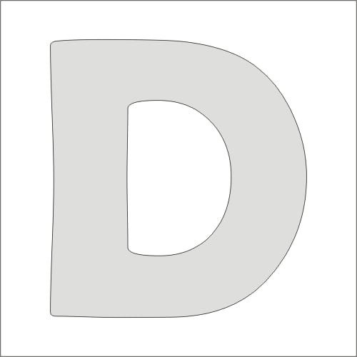 Pojedyncza litera alfabetu o wysokości ok. 6 cm, wykonana z szarej tektury o grubości 1,5 mm.
