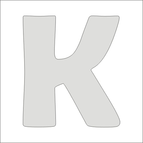 Pojedyncza litera alfabetu o wysokości ok. 6 cm, wykonana z szarej tektury