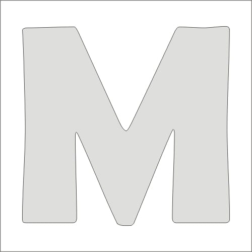 Pojedyncza litera alfabetu o wysokości ok. 6 cm, wykonana z szarej tektury o grubości 1,5 mm.