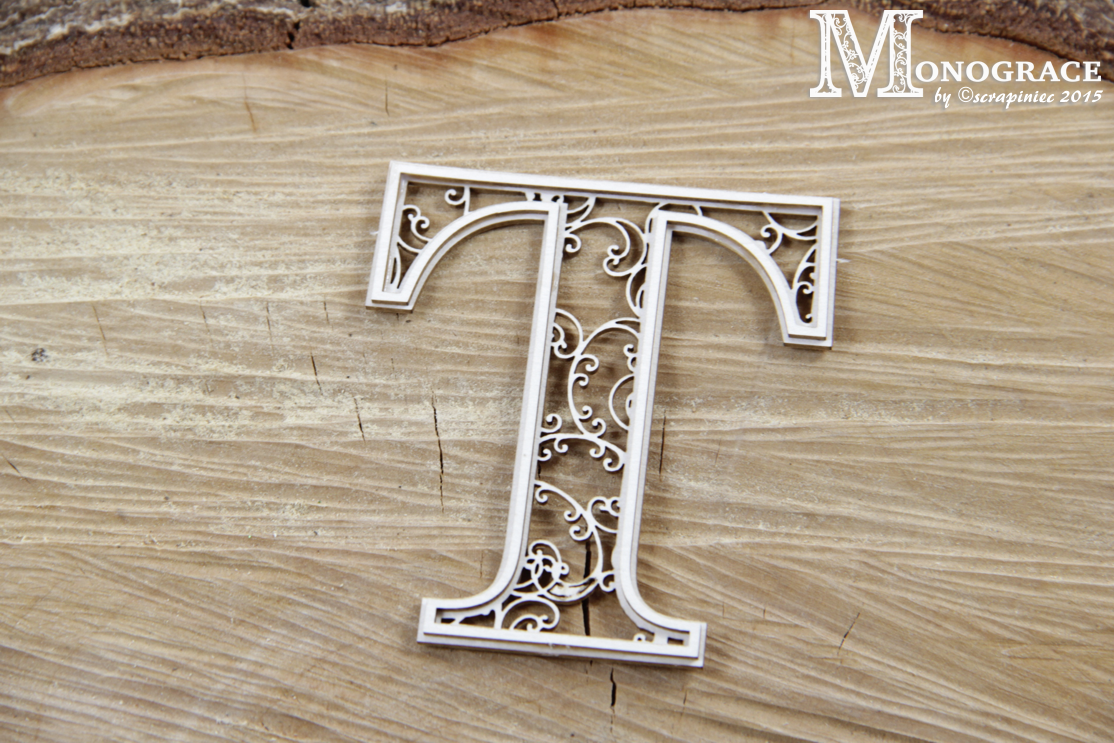 Two-layer monogram made of 1,2 mm thick natural white chipboard.