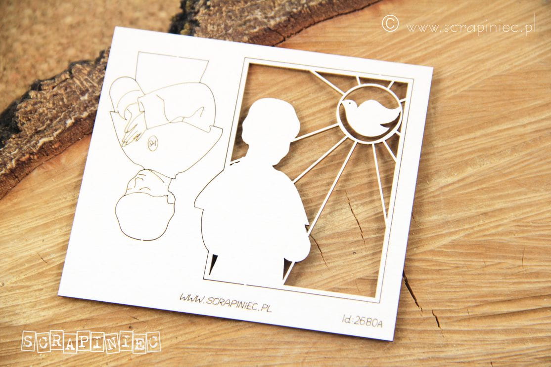 Obrazek - witraż prostokątny: chłopiec i gołębica