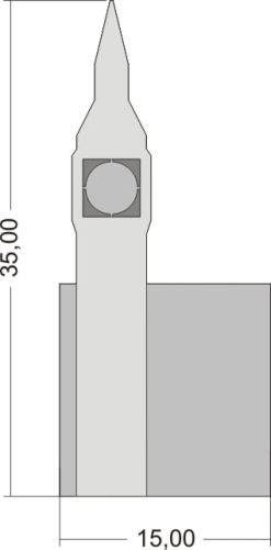 Baza o kształcie wieży londyńskiego Big Bena. Zachowuje proporcje rzeczywistego obiektu. Rozmiar podstawy kwadratowego obszaru roboczego) 15x15 cm. Całkowity wymiar bazy 15x35 cm.