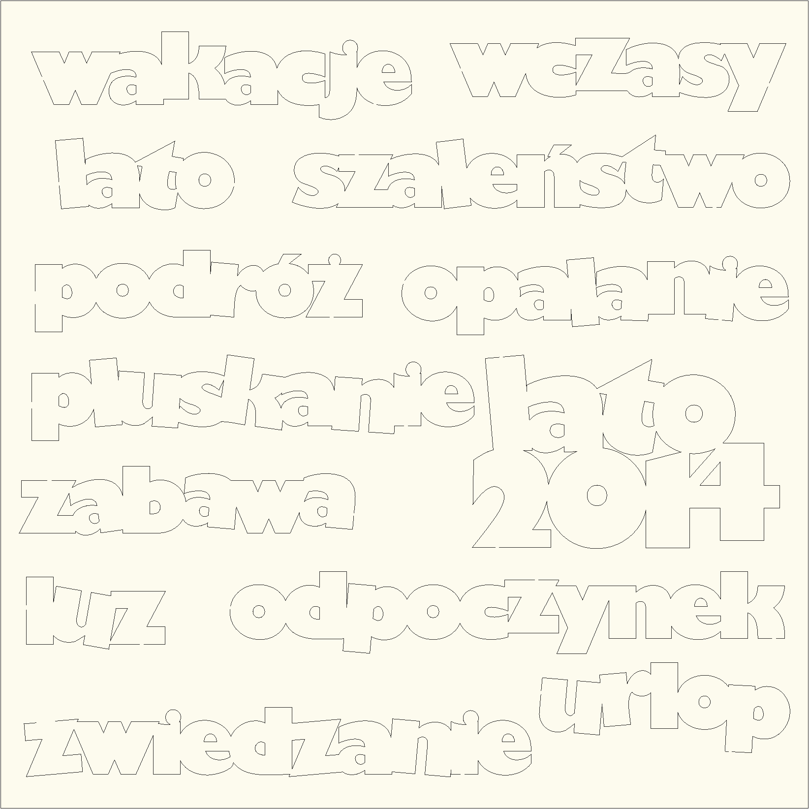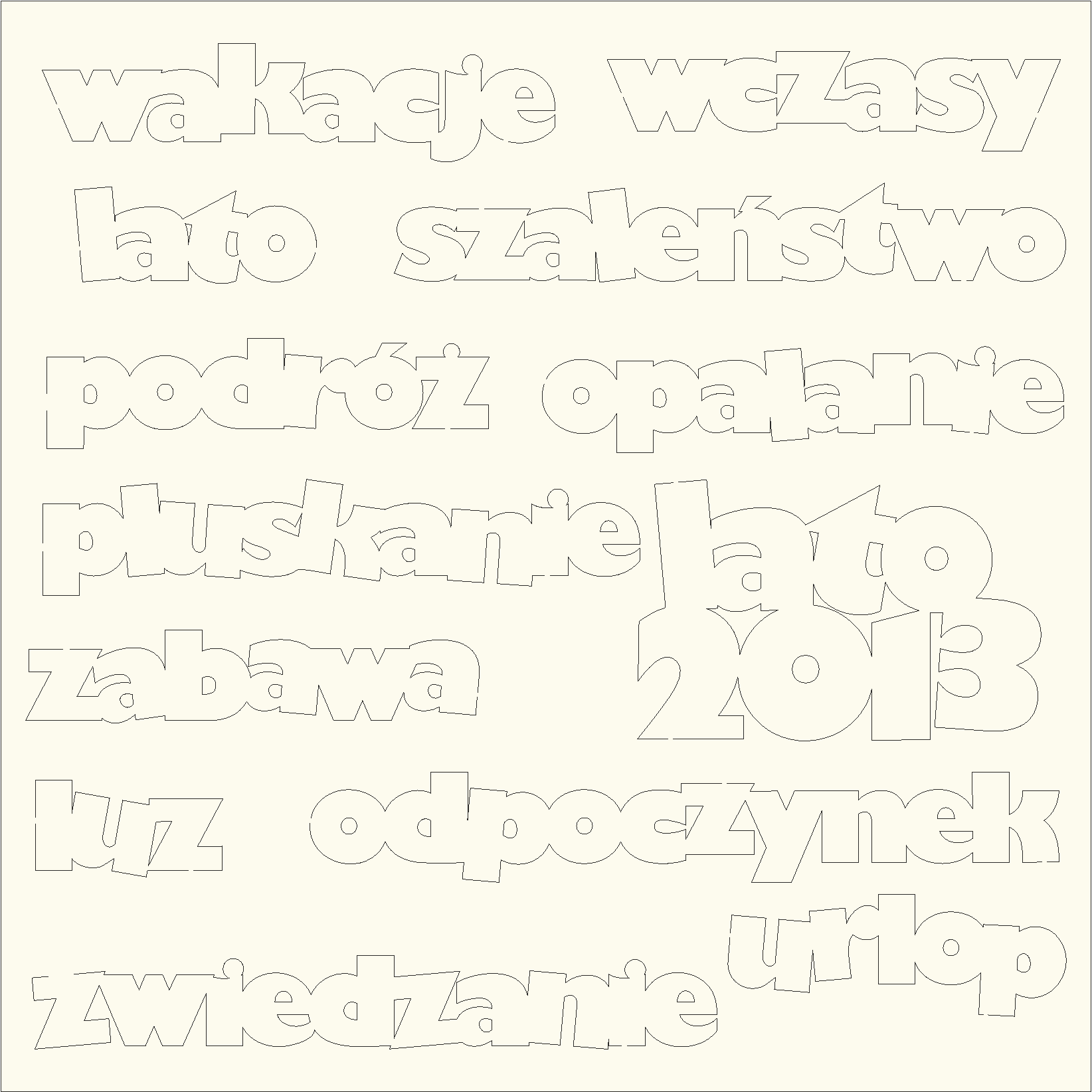 Zestaw słówek do wykrawania w arkuszu 14x14 cm.